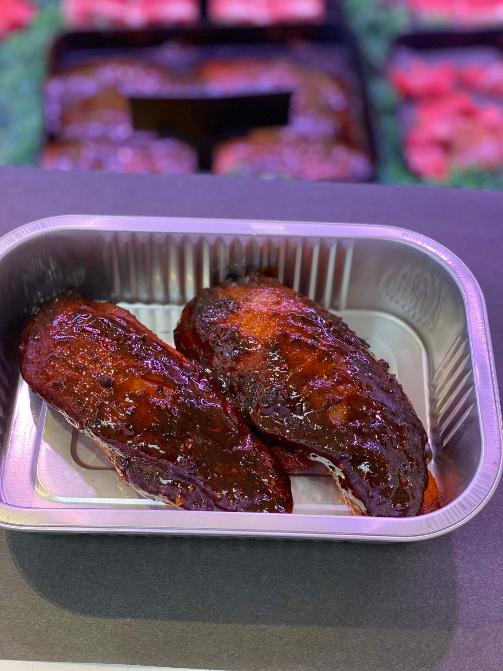 2 x Jerk chicken breast in a handy ready to cook foil container, these are quite spicy but very nicey, a very good seller from the shop counter
